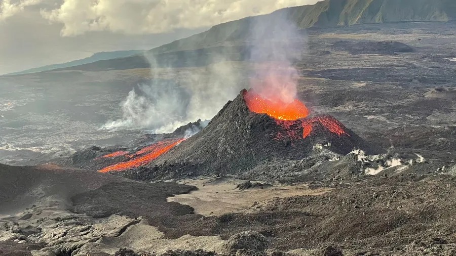 L’éruption débutée le 13 février 2026 au Piton de la Fournaise se poursuit. Après deux phases d’arrêt (entre le 25 et le 28 mars et entre le 3 et le 8 avril), l’activité éruptive a repris le 8 avril vers 13h15 heure locale, d’abord au sein du cône éruptif formé depuis le 13 février à 2056 m d’altitude sur le flanc Sud-Sud-Est du volcan, et depuis le 9 avril (9h15 heure locale) au niveau d’un deuxième point d’émission ouvert 230 m un peu plus en amont dans une zone déjà fragilisée le 13 février .