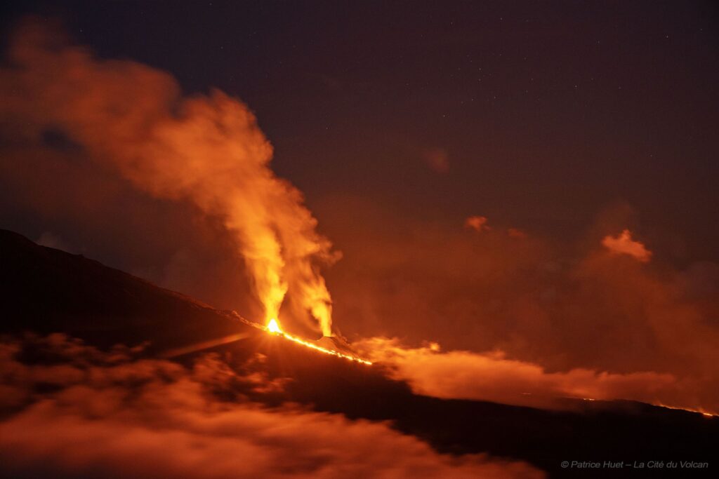 A noter qu’aucun nouveau dyke* ne s’est formé ou propagé en lien avec ce point d’émission. Il s’agit donc toujours de la même éruption, mais avec l’ouverture d’un nouveau point d’émission en surface. Pour rappel au début de l’éruption, un total de 4 fissures éruptives s’étaient ouvertes avant de se focaliser en un point sur le flanc Sud-Sud-Est du volcan.