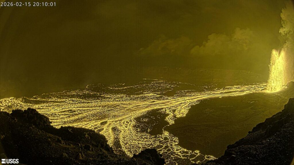 L’épisode n° 42 de fontaines de lave dans le cratère Halemaʻumaʻu a débuté au sommet du Kīlauea le 15 février 2026 à 13h50 HST et se poursuit à la date du présent avis.