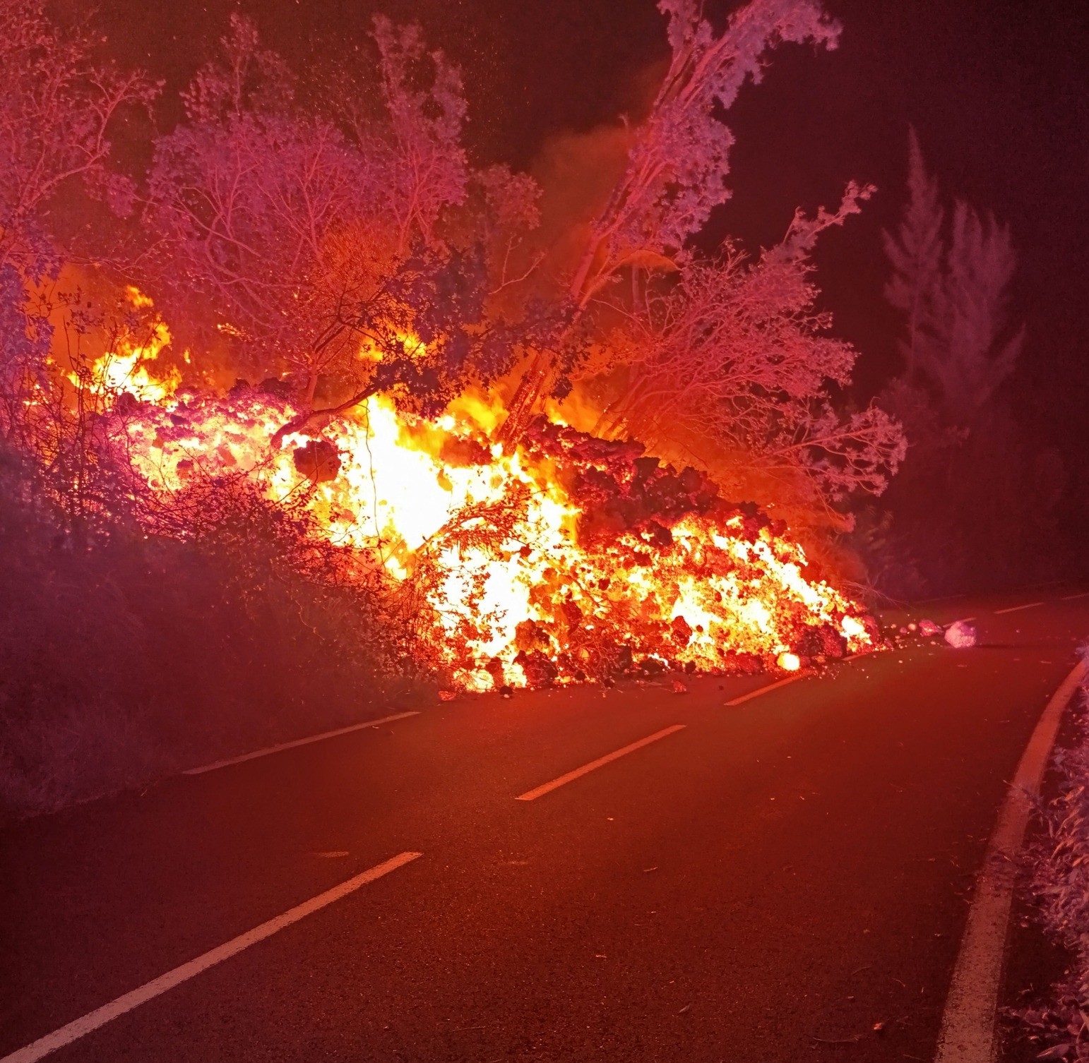a été de nouveau coupée par la lave, 300 m plus au Sud du précédent point de coupure. Au niveau du cône éruptif des remous et débordements de lave sont observés. Le trémor éruptif (indicateur du flux de lave et de gaz) montre une tendance à la baisse sur les dernières 24h. Une forte sismicité ainsi qu’une déflation de l’édifice, indiquant une dépressurisation du réservoir magmatique superficiel, sont toujours observées.