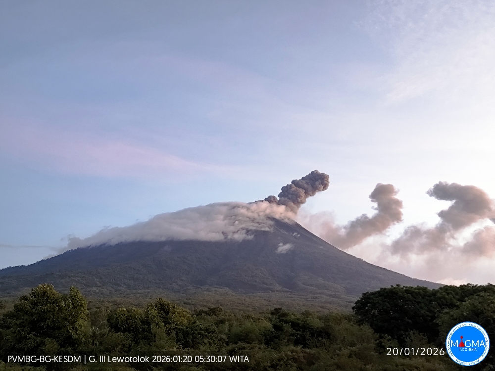 Une éruption du mont Ili Lewotolok s’est produite le mardi 20 janvier 2026 à 05h28 WITA. La colonne de cendres observée s’élevait à environ 500 m au-dessus du sommet (environ 1923 m d’altitude). De couleur gris-noir, la colonne de cendres, épaisse, se dirigeait vers l’Est. Cette éruption a été enregistrée par un sismographe avec une amplitude maximale de 33,8 mm et une durée de 142 secondes.