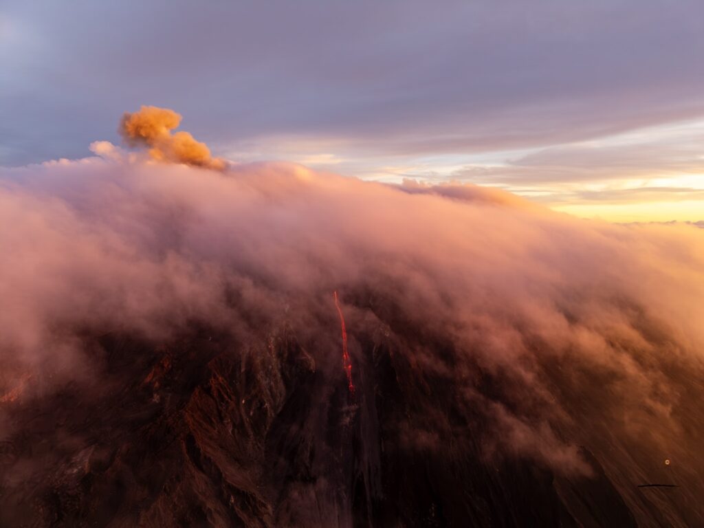 Du 16 au 22 janvier 2026, le volcan était parfaitement visible jusqu’à ce qu’il soit enveloppé de brouillard. Une fumée blanche et grise, d’intensité faible à modérée, s’élevait du cratère à une hauteur de 5 à 100 mètres au-dessus du sommet. La colonne éruptive, de couleur blanche à grise, s’étendait de 50 à 200 mètres au-dessus du sommet. Les matériaux éjectés sont retombés principalement dans la zone autour du cratère. L’éruption s’est accompagnée d’un grondement faible à modéré. Les coulées de lave dans le secteur Ouest ont cessé.