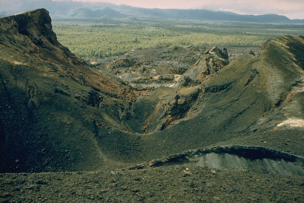 La fissure de Kitazungurwa de 1986 est visible sur cette photo de 1987. L’éruption du flanc Sud a produit un cône de scories et une coulée de lave qui a parcouru 19 km le long du flanc Sud-Ouest. Cette coulée s’est approchée à moins de 2 km de la route longeant la rive Nord du lac Kivu, entre Goma et Sake.