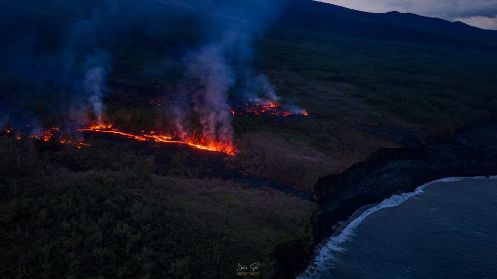 De petits débordements précurseurs se poursuivent ce matin à partir de l’évent Sud. Le sommet s’est lentement dégonflé au cours des dernières 24 heures, ce qui pourrait retarder le début de l’épisode 44 de fontaines volcaniques. D’autres débordements et projections de lave associées devraient se poursuivre jusqu’au début de l’épisode 44. La période de prévision actuelle pour l’épisode 44 est du 6 au 14 avril. Aucune activité significative n’a été observée le long des zones de rift Est et Sud-Ouest du Kīlauea.