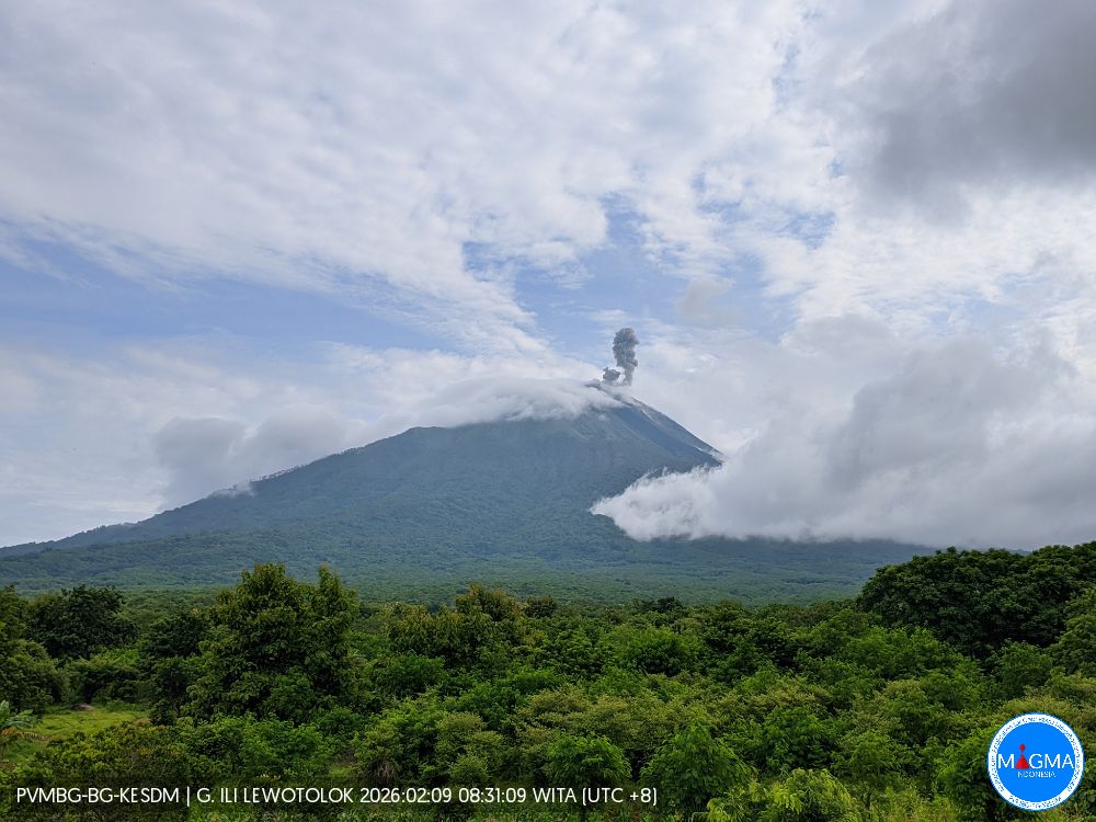 Une éruption du mont Ili Lewotolok s’est produite le lundi 9 février 2026 à 08h58 WITA. La colonne de cendres observée s’élevait à environ 200 m au-dessus du sommet (environ 1 623 m d’altitude). De couleur blanche à grise, la colonne de cendres était plus épaisse, orientée vers l’Est. Cette éruption a été enregistrée par un sismographe, avec une amplitude maximale de 18,7 mm et une durée de 49 secondes.