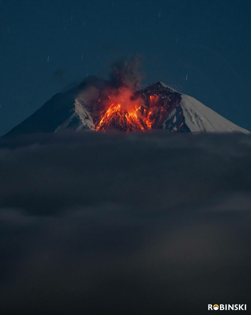 La première éruption historique du volcan a débuté le 2 août 2025. L’éruption explosive-effusive du volcan se poursuit. La précédente éruption effusive du volcan s’est produite il y a 400 à 600 ans. En 1963, une activité fumerolienne avait été constatée dans le cratère du cône Nord .
