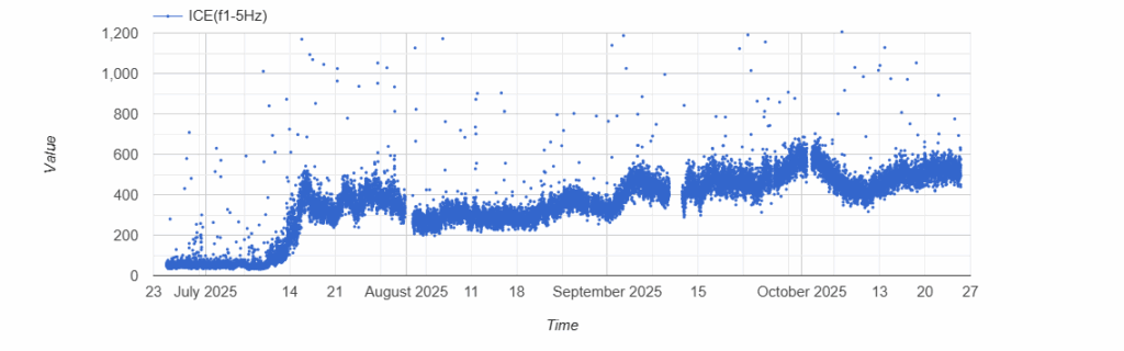 From October 14 to 20, 2025, seismic activity associated with rock fracturing within the volcanic edifice continued to be recorded. This seismic activity remained at levels similar to those of the previous week, both in terms of the number of events recorded and the seismic energy released. The earthquakes were located beneath the main dome and on the southwest, west-southwest, south, and south-southeast flanks, less than 3 km from the main dome and at depths between 2 and 8 km from the volcano’s summit. The maximum magnitude event of the week occurred on October 19 at 3:32 a.m., with a magnitude of 1.4, beneath the main dome, at a depth of 6 km.