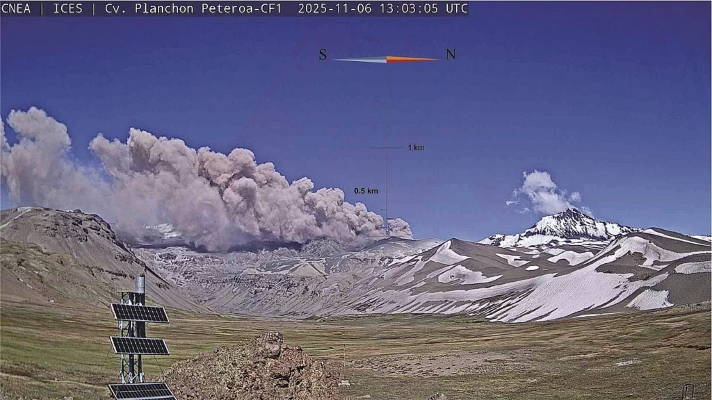 During the second half of the month, the Planchón-Peteroa volcanic complex maintained activity levels above baseline, with persistent records of fluid-dynamic earthquakes (some short-duration and others long-duration). At the surface, pulsatile gas plumes persisted, accompanied by localized increases in particulate matter.