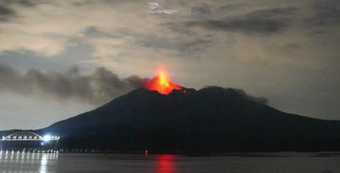 Une éruption s’est produite dans le cratère Minamidake, sur le mont Sakurajima, dans la préfecture de Kagoshima, juste avant 1 h du matin dimanche, projetant un panache de cendres à 4 400 mètres d’altitude.
