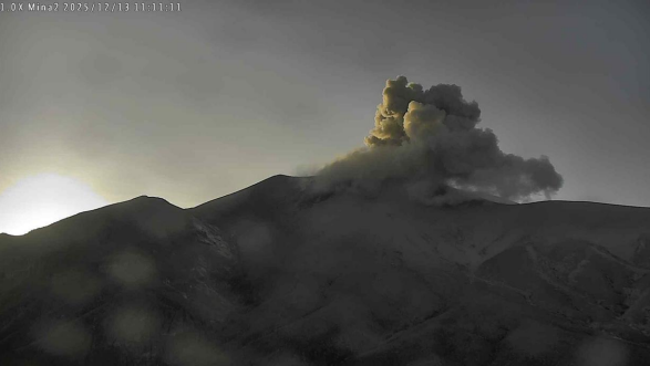 En raison des conditions météorologiques, il n’a pas été possible d’observer les émissions de gaz et de cendres par le biais du système de caméras de surveillance ; cependant, les images satellites du GOES-19 ont détecté une émission de gaz et de cendres dont la colonne a atteint 1 200 mètres au-dessus du cratère, dérivant vers le Nord-Est. Concernant cette activité, le VAAC de Washington a publié trois rapports, faisant état de panaches d’une hauteur comprise entre 700 et 1 300 mètres au-dessus du rebord du cratère, dérivant vers l’Ouest, l’Ouest-Sud-Ouest et l’Ouest-Nord-Ouest.