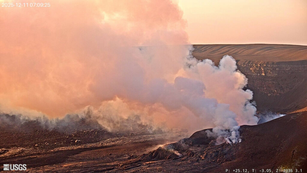 Kīlauea has been erupting episodically since December 23, 2024, primarily from two vents (north and south) in Halema‘uma‘u. Eruptive episodes, which can last up to 12 hours, are separated by pauses that can be as long as two weeks.