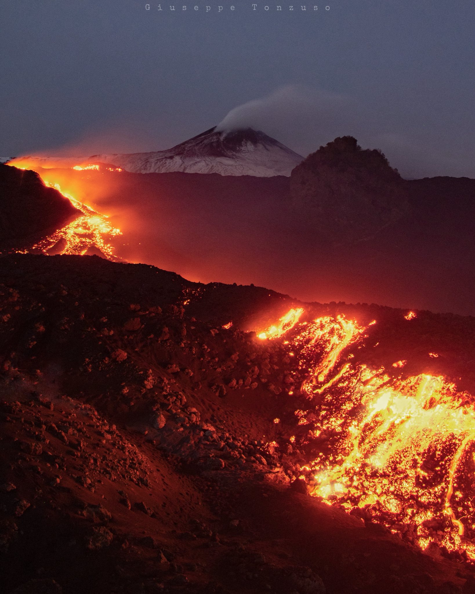 The National Institute of Geophysics and Volcanology (INGV), Etna Observatory, reports that field surveys conducted by INGV staff between 6:00 PM and 9:00 PM (local time) show that the portion of the lava field located between Rocca Musarra and Rocca Capra is no longer being fed and that the lava fronts are stationary and cooling.