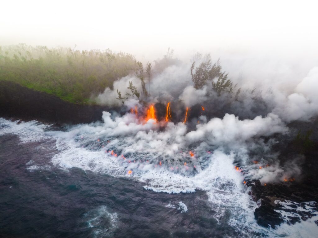 This plume, sometimes called « lava haze, » can be irritating and corrosive to the respiratory tract, skin, and eyes. Its dispersal is highly dependent on local weather conditions. Furthermore, the sudden contact between the lava and the water can generate localized explosions, projecting molten material and jets of high-temperature steam in the immediate vicinity of the point of entry into the sea.